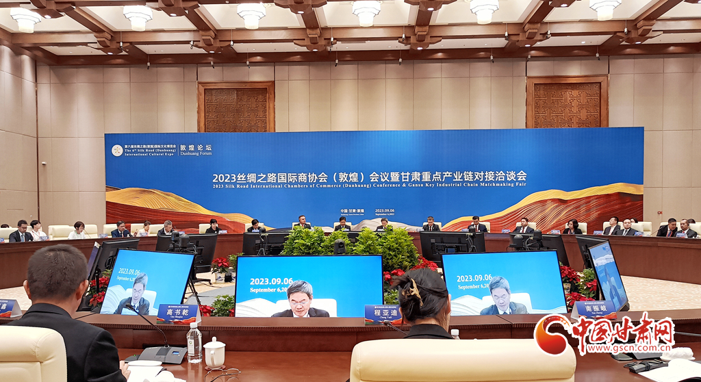 中國甘肅網(wǎng)9月6日訊(西北角·中國甘肅網(wǎng)記者 宋芳科 程健 程霜 李云樂)9月6日下午,第六屆絲綢之路(敦煌)國際文化博覽會系列活動2023絲綢之路國際商協(xié)會(敦煌)會議暨甘肅重點產(chǎn)業(yè)鏈對接洽談會在敦煌舉辦。