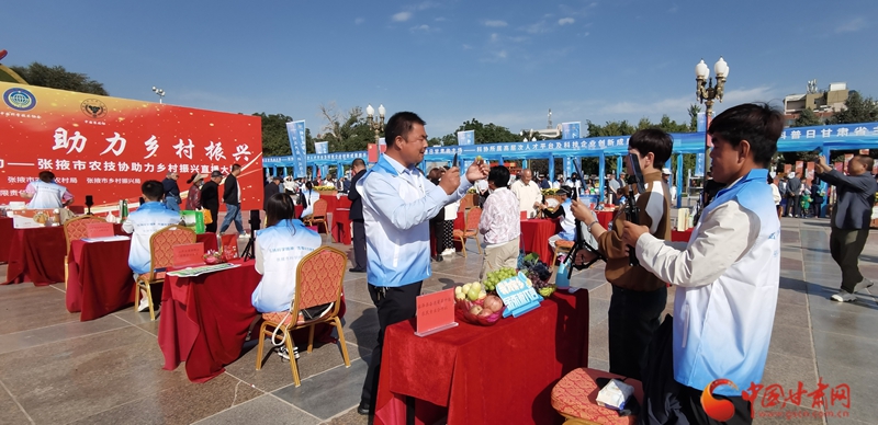 品味張掖好物,助力鄉(xiāng)村振興。在全國科普日甘肅主場活動之一的張掖市農(nóng)技協(xié)助力鄉(xiāng)村振興直播大賽現(xiàn)場,臨澤縣奮進葡萄種植農(nóng)民專業(yè)合作社負責人賈宏福運用手中的“新農(nóng)具”,通過網(wǎng)絡(luò)直播的形式,向網(wǎng)友們推介自產(chǎn)的葡萄,并向大家分享科技助農(nóng)為他帶來的喜悅。