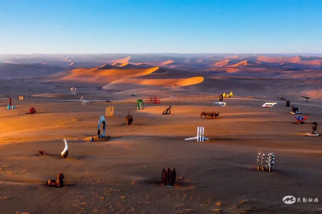民勤蘇武沙漠景區(qū)絕對(duì)是網(wǎng)紅般的存在。刷屏各平臺(tái)它已成為???,沙漠雕塑國(guó)際創(chuàng)作營(yíng)是大家最愛(ài)的拍照打卡地,132座不同材質(zhì)、不同風(fēng)格的藝術(shù)佳作,如一顆顆璀璨明珠飄落瀚海,與藍(lán)天白云、金色大漠完美融合、相映成趣,超級(jí)出片。