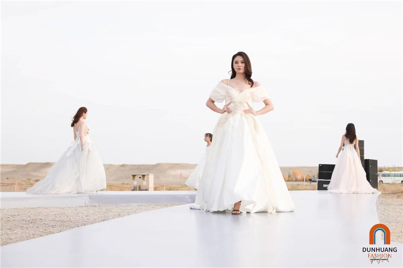 2023敦煌國際時尚周以一場在玉門關(guān)前的時尚走秀拉開帷幕。著名時尚藝術(shù)家、服裝設計大師張肇達攜手頂級婚紗品牌馬克·蝶麗奧娜帶來了60套婚紗禮服首次亮相。