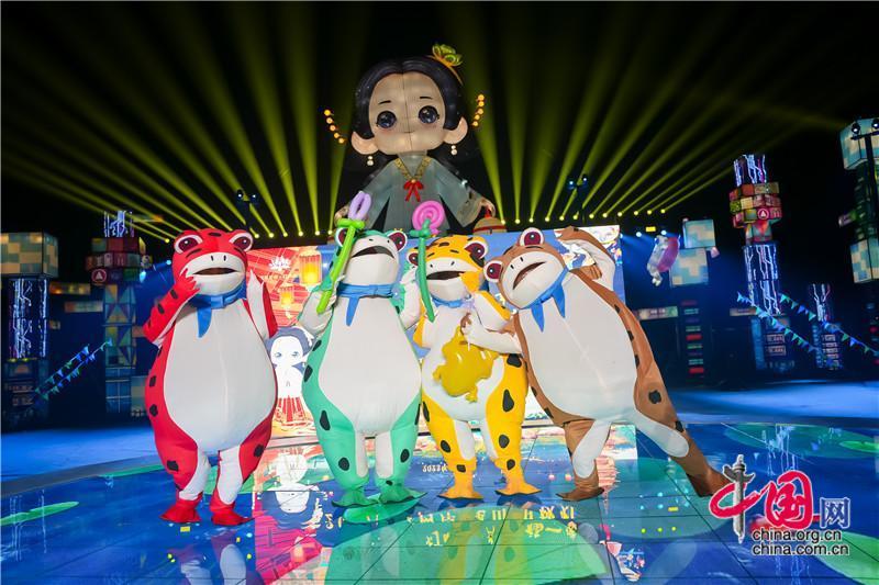 水鄉(xiāng)錦鯉,有福有喜,錦鯉飛魚(yú)秀徜徉在舞臺(tái)與燈組之間。