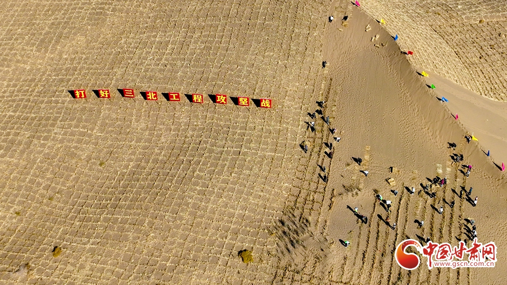 10月31日,河西走廊——塔克拉瑪干沙漠邊緣阻擊戰(zhàn)張掖區(qū)域戰(zhàn)役正式啟動(dòng),張掖市千名市民來到高臺(tái)縣巴丹吉林沙漠南緣西沙窩風(fēng)沙口治理區(qū)共同義務(wù)壓沙障。