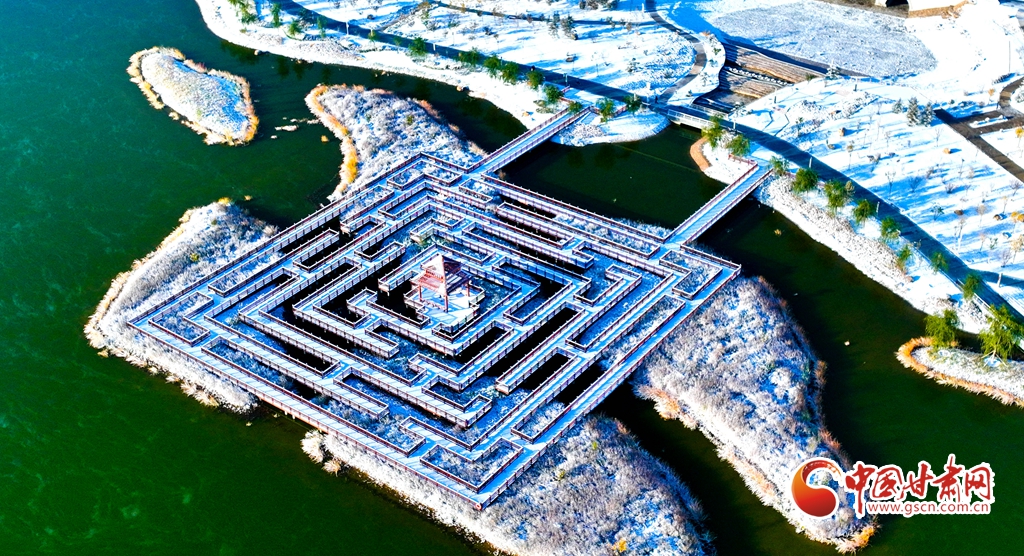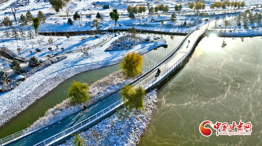 11月5日,受寒潮侵襲,甘肅省張掖市出現(xiàn)降溫降雪天氣。雪后初晴,張掖市中央文化公園內(nèi),銀裝素裹,景色迷人,宛若畫卷。