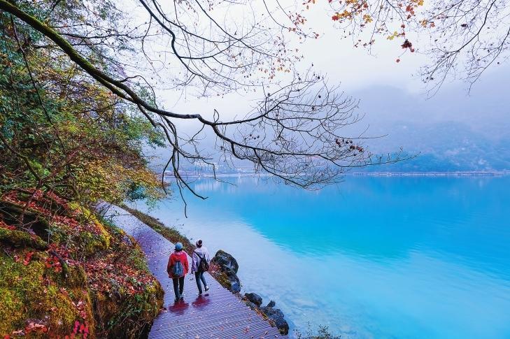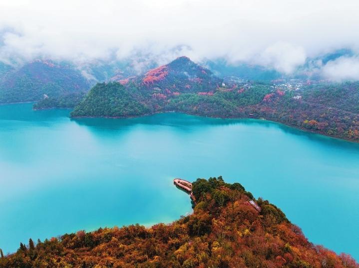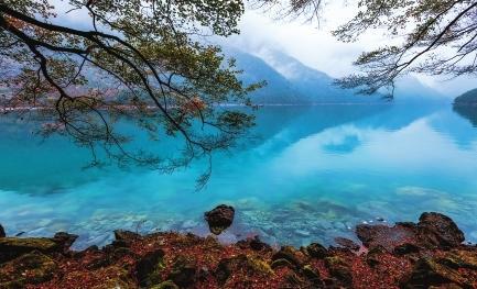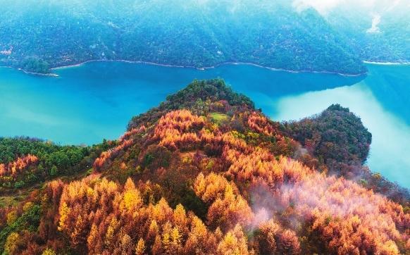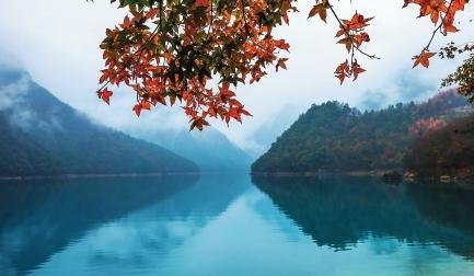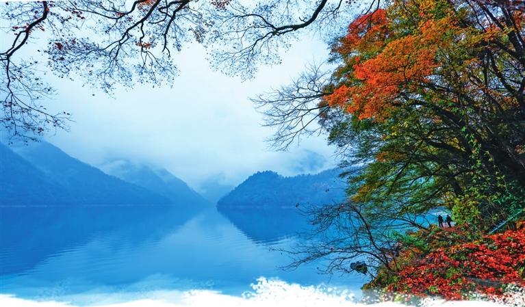 初冬時(shí)節(jié),文縣天池國(guó)家森林公園尚未褪去秋裝。遠(yuǎn)山峰巒疊嶂,層林色彩斑斕,近水沉斂如鏡,林木倒映其間。黃葉悄落,波紋漣漪,云霧時(shí)起,水霧彌漫。初冬的天池,靜美如畫(huà)卷。