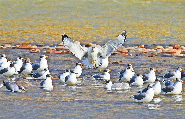 原標(biāo)題:黃河岸邊候鳥(niǎo)翔集