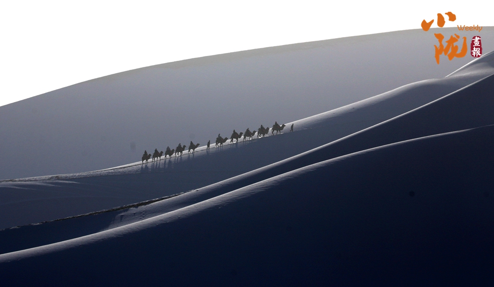 在沙漠里騎著駱駝,感受一下沙子和雪花交融在一起的觸感,這場大漠雪景為敦煌增添了很多迷人的感覺。