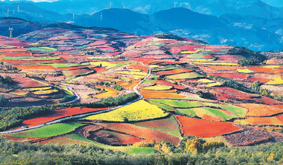 冬日艷陽下,云南省昆明市東川區(qū)紅土地鎮(zhèn)獨特的紅土地景觀,吸引各地游客前來,也帶動周圍百姓增收。