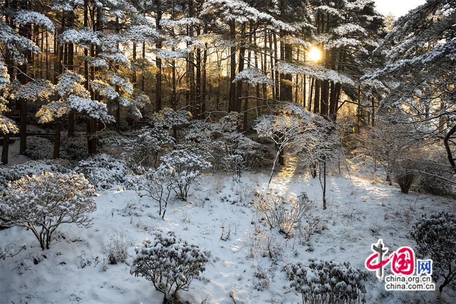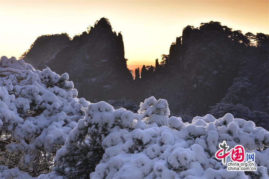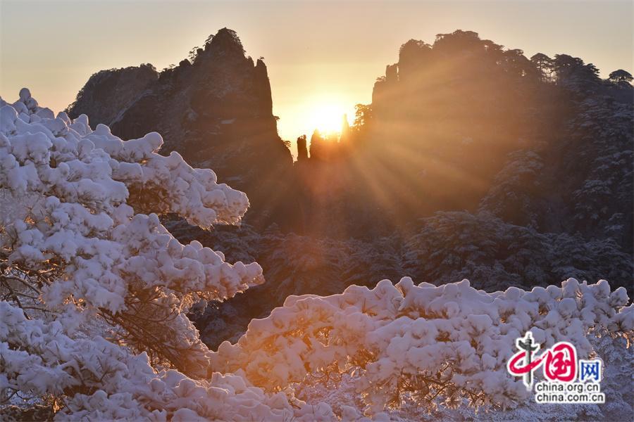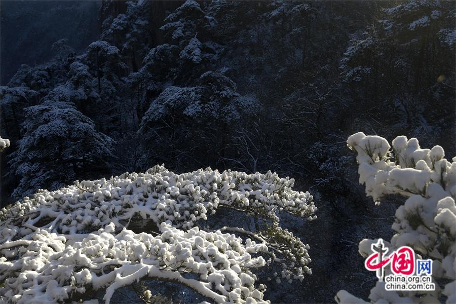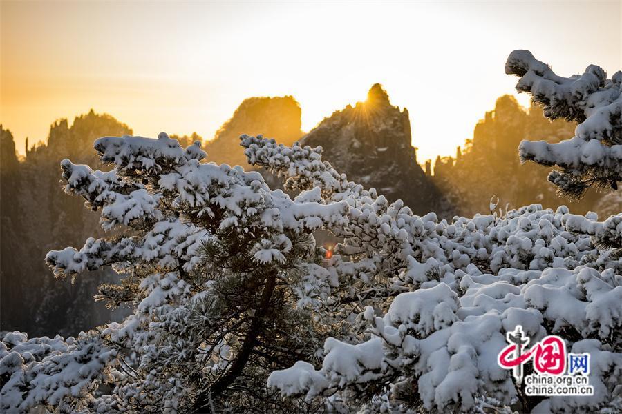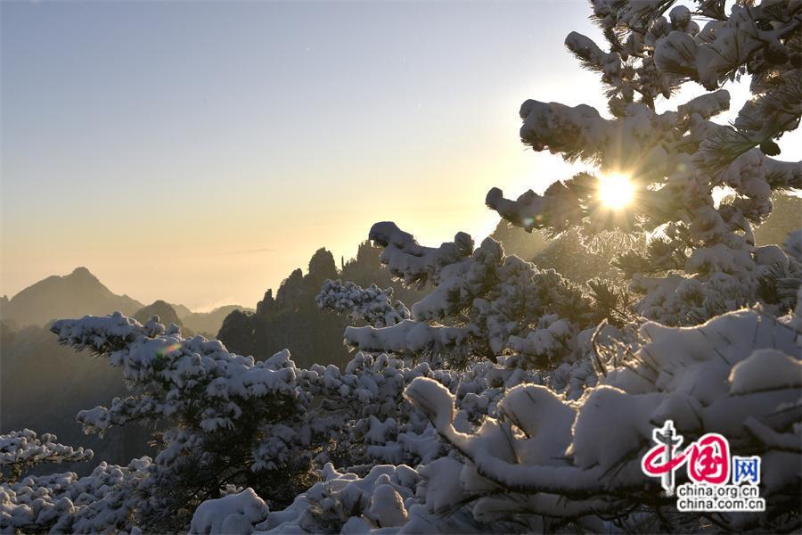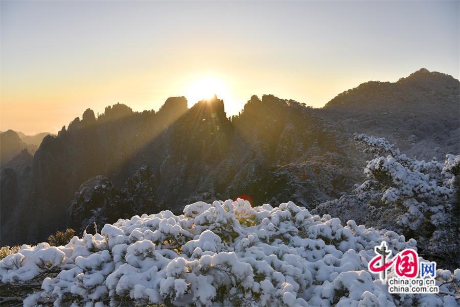 【點睛】2024年1月3日早雪后的黃山銀裝素裹,在陽光下晶瑩剔透。