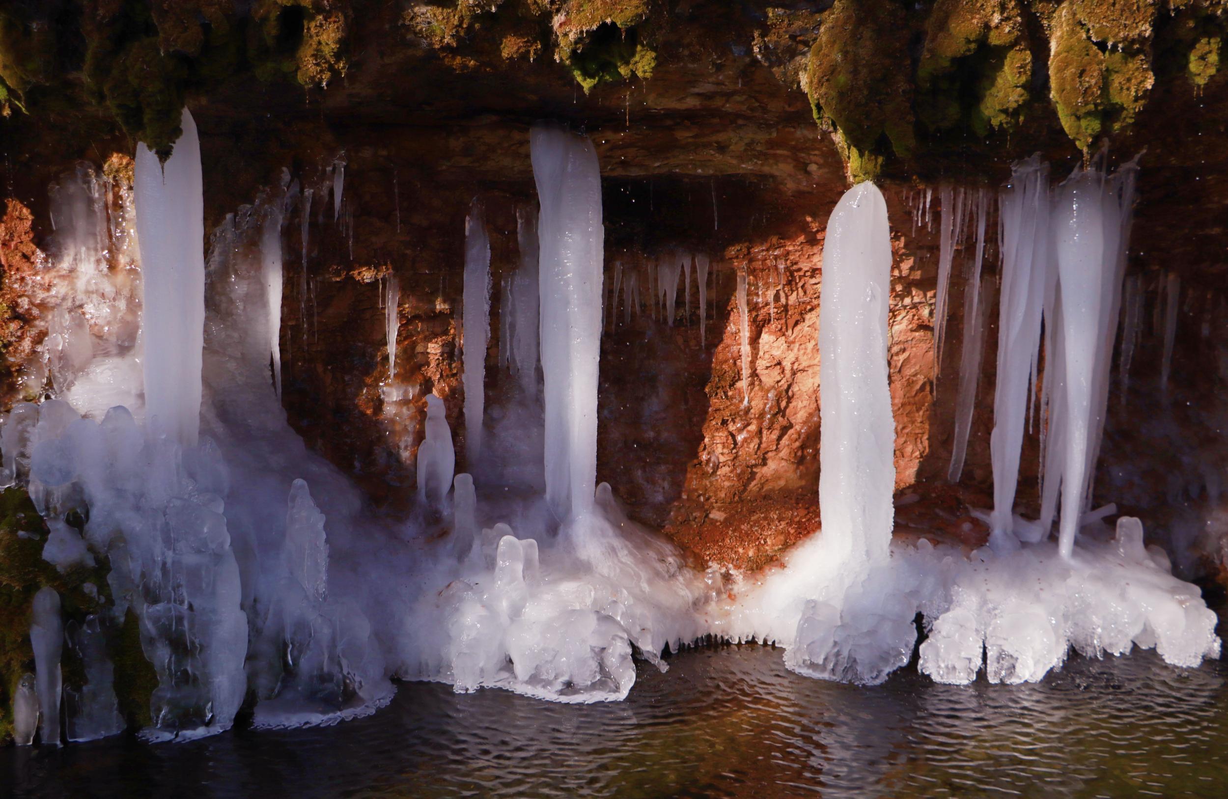 連日來(lái),崇信縣持續(xù)降溫,AAAA級(jí)旅游景區(qū)龍泉寺泉水凝結(jié)成奇特秀麗的冰掛、冰柱、冰花美景,懸掛于山間,如萬(wàn)把銀色寶劍垂吊,展現(xiàn)著冰肌雪骨的風(fēng)姿,似盞盞熒光閃爍,在陽(yáng)光的照耀下熠熠生輝、耀眼奪目,引來(lái)不少游客拍照觀賞。(崇信縣融媒體中心記者:孫淑霞  張百耀)
