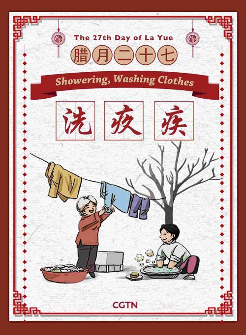 臘月二十七,人們會(huì)洗衣、沐浴或洗澡。這代表著洗掉過(guò)去一年所有的晦氣,讓來(lái)年百病不生。