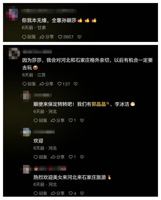 此前,多位網友向石家莊市文化廣電和旅游局官方賬號“石家莊文旅之聲”留言,表示想看國乒名將孫穎莎代言家鄉(xiāng)。公開資料顯示,出生于河北省石家莊市的孫穎莎在此開啟了乒乓球生涯。