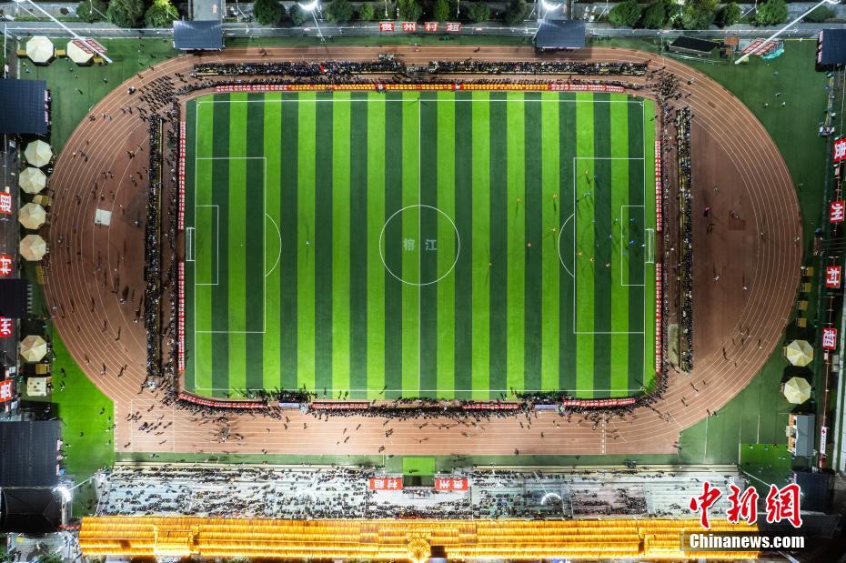 圖為1月18日晚,航拍2024年貴州“村超”預選賽現(xiàn)場。(資料圖)唐哲 攝