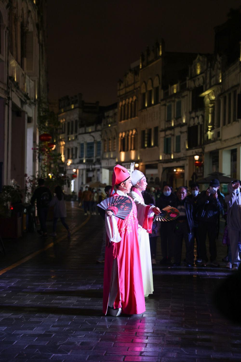 ↑觀眾在??隍T樓老街觀看瓊劇表演。瓊劇又稱“海南戲”,是國家級非物質(zhì)文化遺產(chǎn)之一。在海南欣賞瓊劇,是認(rèn)識當(dāng)?shù)匚幕?、體驗當(dāng)?shù)匚幕囊粋€好方式。新華社記者 張麗蕓 攝(資料圖片)