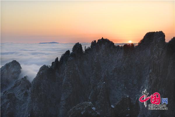 只有一個黃山:雪后日出、云海同現(xiàn) 美輪美奐