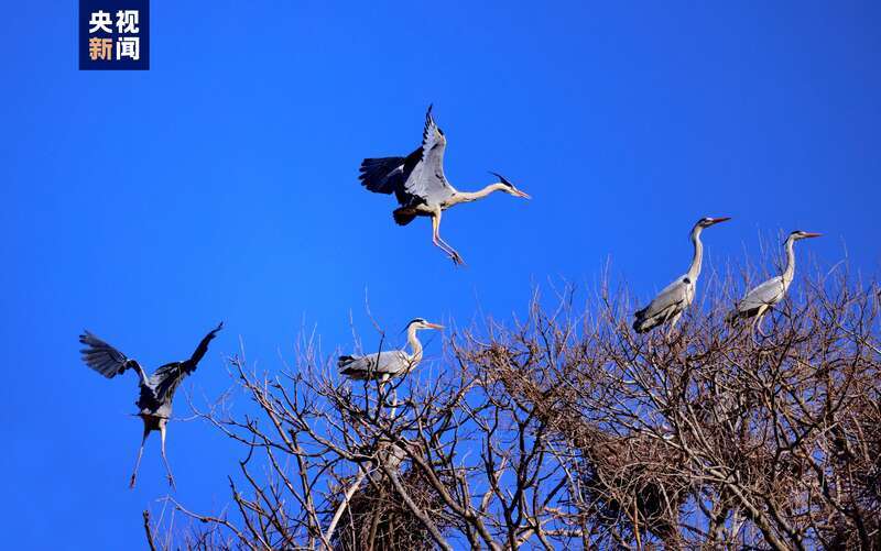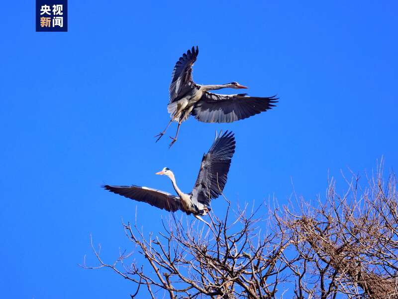 隨著氣溫回升,位于子午嶺腹地的甘肅省慶陽市合水縣太白鎮(zhèn),有成群結(jié)隊(duì)的蒼鷺如約從南方飛來。它們或落在樹冠,偎依在一起,或維修著往年搭建好的巢穴,開啟新一輪的繁衍生息。子午嶺腹地是天然的生態(tài)林區(qū),近年來,當(dāng)?shù)鼐C合實(shí)施固溝保塬、退耕還林、植樹造林等工程,森林覆蓋率達(dá)到69.82%,引來眾多珍稀鳥類繁衍生息。(總臺(tái)記者 焦健)
