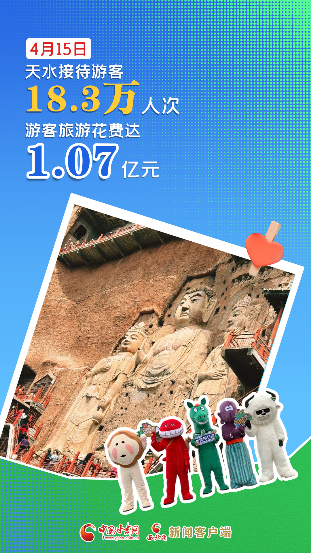 海報|4月15日,天水市共接待游客18.3萬人次,游客旅游花費(fèi)達(dá)1.07億元