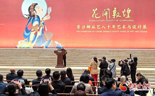 中國甘肅網(wǎng)4月30日訊(西北角·中國甘肅網(wǎng)記者 任磊)29日上午,“花開敦煌——常沙娜從藝八十年藝術(shù)與設(shè)計展”在中國工藝美術(shù)館盛大開幕。展覽匯聚了著名藝術(shù)教育家和藝術(shù)設(shè)計家常沙娜先生400余件代表性作品,既展現(xiàn)了她深厚的敦煌藝術(shù)傳統(tǒng)積淀,也彰顯了她為新中國藝術(shù)設(shè)計做出的杰出貢獻。