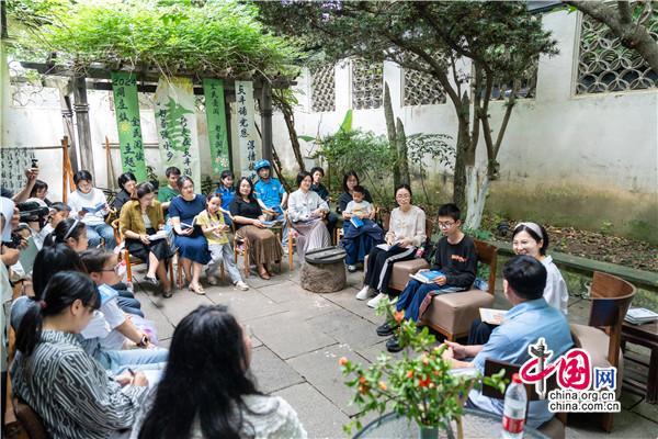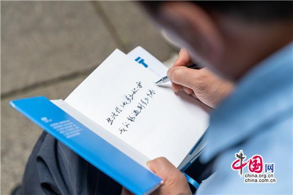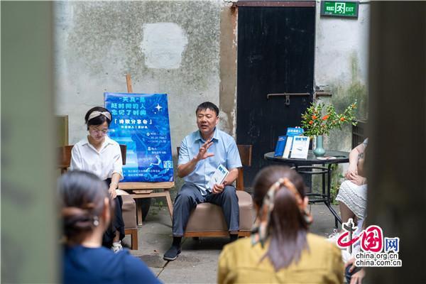 在書院小院里,一位腳穿布鞋,親切隨和,滿臉笑容的男士正在分享,從《趕時(shí)間的人》創(chuàng)作心得,到新書《低處飛行》作品朗誦和創(chuàng)作故事點(diǎn)滴,還有撿破爛、送外賣的人生經(jīng)歷,深情的講述,傳遞的是始終不曾改變的對(duì)寫詩(shī)的執(zhí)著與熱愛(ài)。