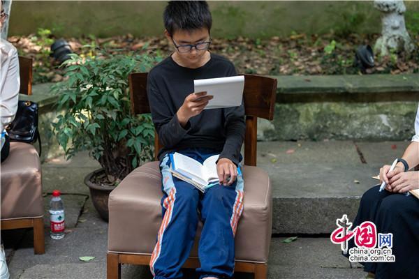 在王老師的感染下,活動(dòng)現(xiàn)場(chǎng)交流熱烈,相談甚歡。參與者有學(xué)生、老師、旅游工作者等,更有駐足聆聽(tīng)的游人。他們深情朗誦王老師的作品,有感而發(fā),從詩(shī)里談到生活,從工作學(xué)習(xí)中又回到書本,詩(shī)歌的靈感和種子悄然播下。