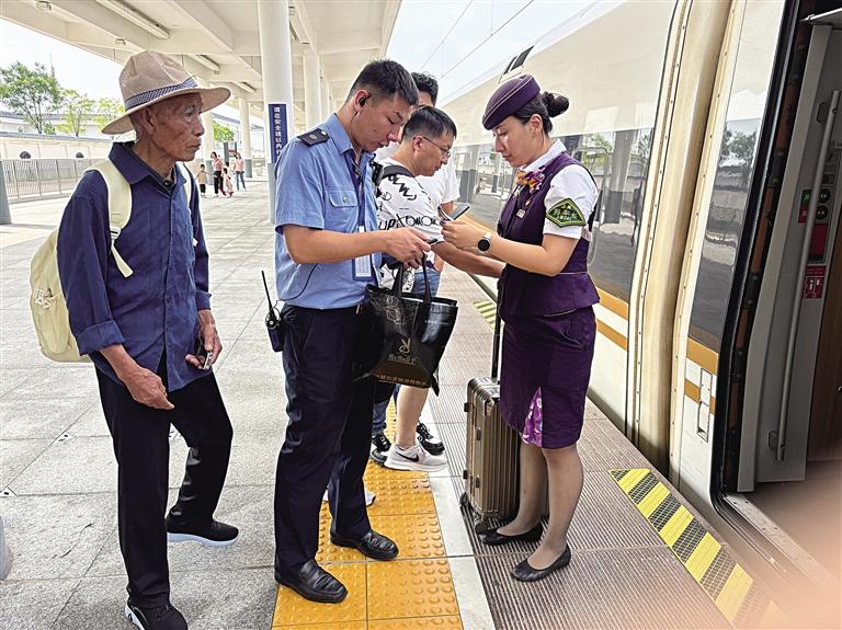 銀西高鐵開通4年,不僅改變了革命老區(qū)慶陽百姓的出行方式,更改變了老區(qū)的產(chǎn)業(yè)結(jié)構(gòu),越來越多的人選擇乘坐高鐵到慶陽旅游、追尋革命先輩的事跡。今年是慶陽站開站后的第4個暑運(yùn),劉鑫、楊澤和身邊的同事,始終秉承“待旅客如親人”的服務(wù)理念,在工作中以“多看一眼、多問一句、多走一步”的工作標(biāo)準(zhǔn),周到細(xì)致地服務(wù)老區(qū)人民。