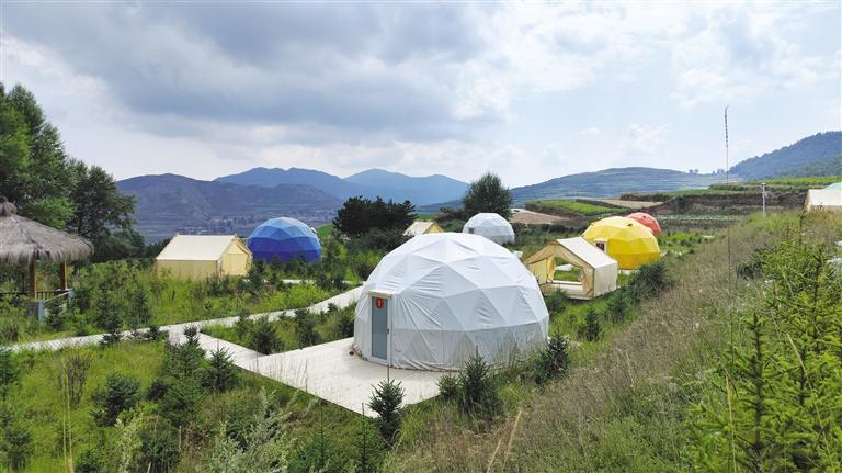沿興隆山大道進(jìn)入滿目翠綠的原始森林,隨著彎曲的盤山公路走進(jìn)了哈班岔村時(shí),首先映入眼簾的便是層層遠(yuǎn)山間科技范十足的民宿太空艙和造型獨(dú)特的露營帳篷,山坡上植被茂密,臨近山腳下的梯田色彩豐富,將一幅自然與人文相互映襯的鄉(xiāng)村畫卷展現(xiàn)在人們面前。