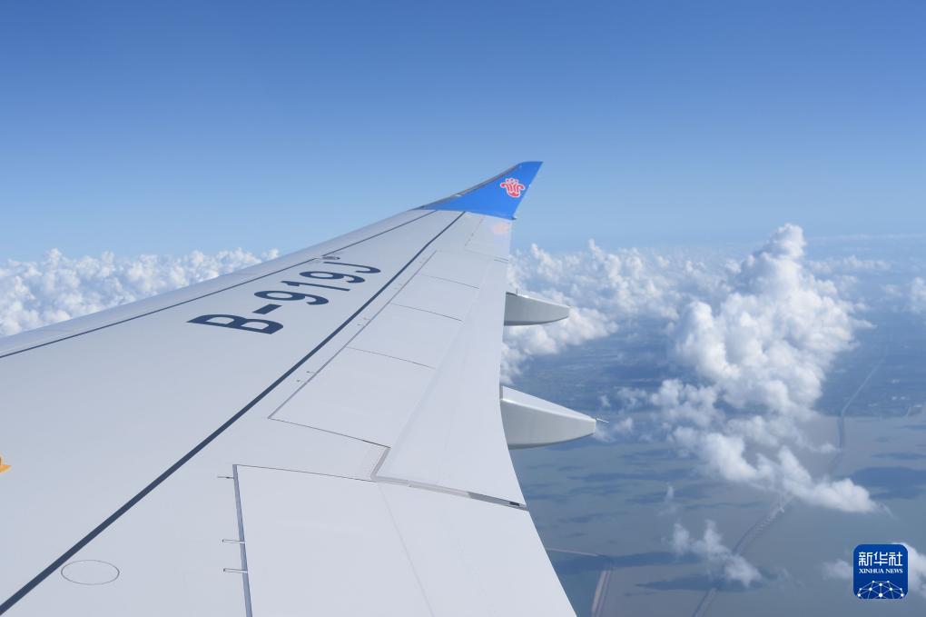 8月29日,編號為B-919J的南航首架C919國產(chǎn)大飛機(jī)在從上海飛往廣州途中。新華社記者 田建川 攝