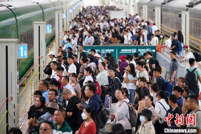 8月31日,云南昆明,列車抵達(dá)昆明站,旅客走出站臺(tái)。當(dāng)日,為期62天的中國鐵路暑運(yùn)結(jié)束。中新社記者 劉冉陽 攝