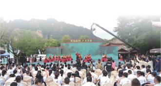 主詩會現(xiàn)場,氣勢恢弘的武術表演,精彩絕倫的拿手絕技,美輪美奐的崆峒山景,蕩氣回腸的武林唱響,組成一幅幅震天動地的美麗畫卷。伴著《少林,少林》《中國功夫》的歌聲,中岳武校功夫表演團數(shù)套行云流水的少林武術,豪氣干云、笑逸蒼茫,一招一式古風流存,展現(xiàn)出少林武者英雄豪杰的氣魄與豪邁,演繹了少林武魂的禪武精神。這些平常只能在電影或電視中才可以看到的少林武功,而今就在眼前,觀眾們紛紛報以熱烈掌聲。武與舞的“對話”,武與舞的“相遇”詮釋鐵血丹心、俠骨柔情。由平?jīng)鰫郯鹏嵛璧概嘤栔行膸砦璧浮锻跄敢寡纭罚ㄟ^王母夜宴的歡樂場景,將西王母和周穆王相愛的神話故事深情講說,情濃處,千回百轉,柔腸百結。一曲《刀劍如夢》穿越時空而來,歌手用獨特的嗓音,將這首歌演繹得淋漓盡致,將觀眾帶入了一個感性而深沉的氛圍,帶領我們回到了那個充滿江湖氣息的瑰麗世界。“滄海一聲笑,滔滔兩岸潮,浮沉隨浪只記今朝,蒼天笑,紛紛世上潮,誰負誰勝出天知曉滄海笑……”一曲《滄海一聲笑》,營造了一股濃濃的中國俠士逍遙風,旋律步步低落,先抑后揚,峰回路轉,觀眾隨著音樂的意象一步步陷入蒼涼和寂寥中。隨著歌曲的高跌起伏,一個個精彩的片段定格為現(xiàn)場觀眾一張張手機影像。