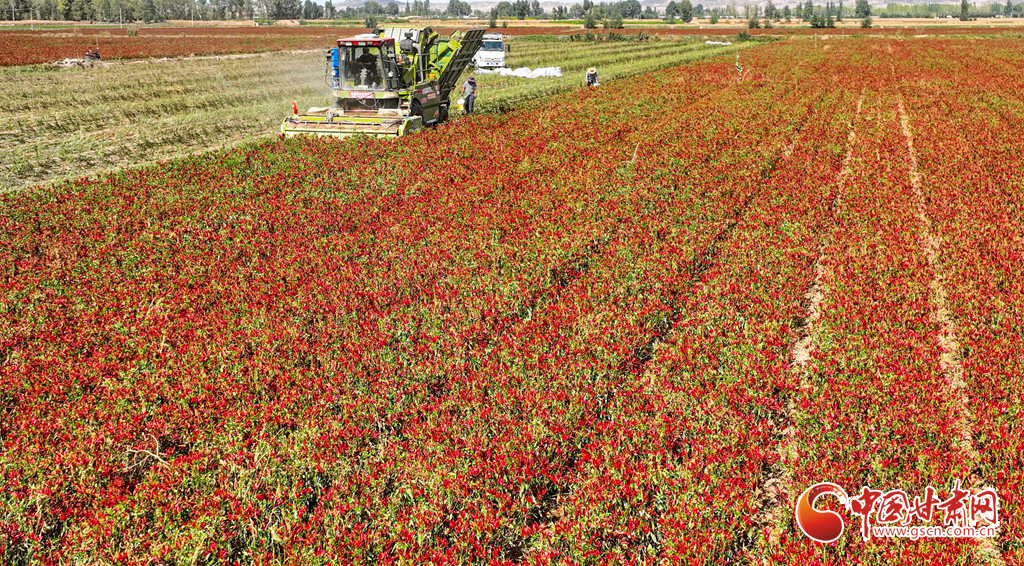 近日,臨澤縣平川鎮(zhèn)種植的3900多畝朝天椒進(jìn)入采收期,朝天椒采收機(jī)馬達(dá)轟鳴,在田地里來回穿梭,快速采收。種植農(nóng)戶們把采收的朝天椒運(yùn)往晾曬場(chǎng),經(jīng)過分揀、晾曬、包裝后發(fā)往山東、河南、安徽、重慶、貴州等地訂單客戶手中。