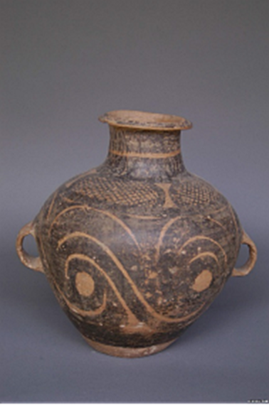 (鋸齒紋彩陶雙耳罐)