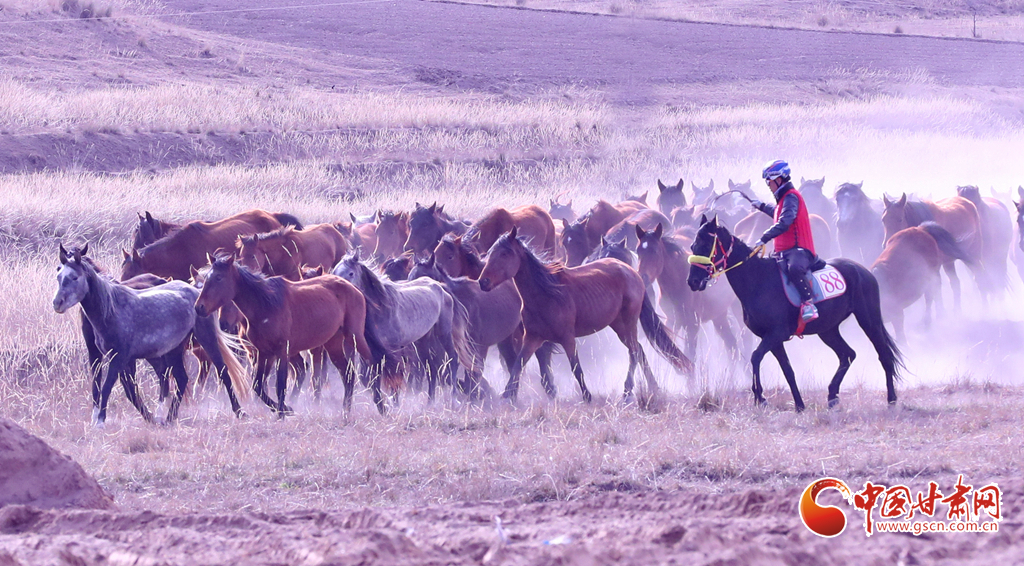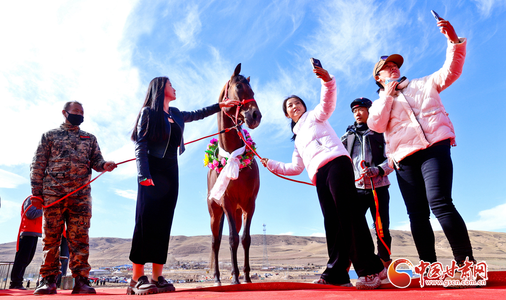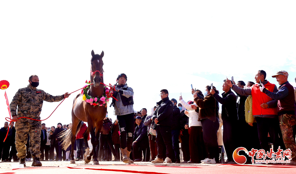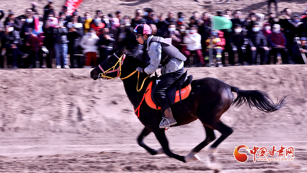 近日,位于祁連山下的甘肅省張掖市山丹縣一賽馬產(chǎn)業(yè)園內(nèi),騎手們正在為游客表演精彩的馬術(shù)運動。