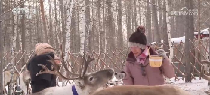 在根河市一景區(qū)內(nèi),來自廣東的50多名游客在此賞雪景、打雪仗。吸引外地游客的不僅是根河市的極寒氣候和冰雪資源,還有這里的馴鹿。馴鹿投喂、馴鹿拉雪橇等活動(dòng),讓游客與馴鹿近距離接觸。