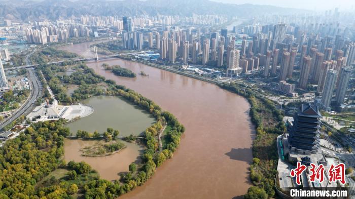 2024年10月31日,黃河蘭州段兩岸的斑斕秋色?!?無(wú)人機(jī)照片) 九美旦增 攝