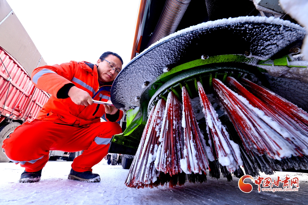 12月10日,張掖公路事業(yè)發(fā)展中心山丹公路段的養(yǎng)護工人們正在進行除雪工作,確保公路的暢通。