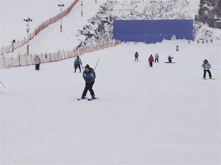 接著來到興隆山滑雪場,這里是冰雪運動愛好者的歡樂天地?;﹫鼋?jīng)理賈青云介紹,該滑雪場占地超400畝,擁有5條初、中級滑雪道,是中初級滑雪愛好者的樂園,今年全新打造的兩萬平方米豪華“戲雪樂園”更是引人注目。“開業(yè)不到一個月,已接待游客一萬多人,周末日均客流量超一千,平日也有四、五百人,滑雪場可同時容納2000人滑雪。”賈青云表示,滑雪場近期推出了優(yōu)惠活動,原價128元的門票現(xiàn)只需88元,包含滑雪服和存衣柜的使用。值得一提的是,經(jīng)過改造升級后的滑雪場加入了波西米亞風(fēng)格,設(shè)有拍照打卡地和咖啡廳,成為年輕消費者熱衷的網(wǎng)紅打卡點,游客在此不僅能滑雪,還能享受火鍋、烤肉等美食,體驗別樣的冬日休閑時光。