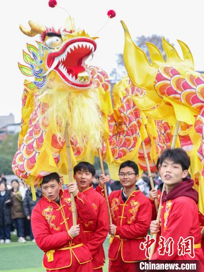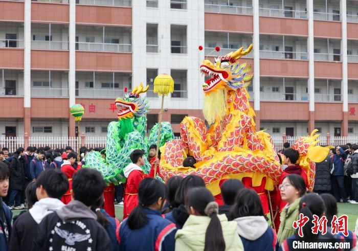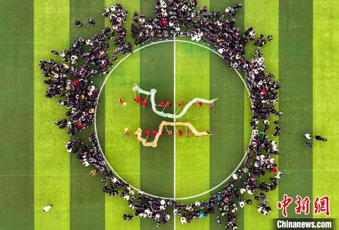 圖為學(xué)生在老師的帶領(lǐng)下舞龍。胡攀學(xué) 攝