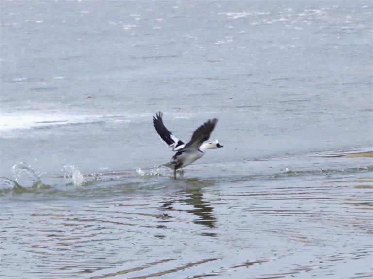 斑頭秋沙鴨是我國“三有”保護動物,它還有一個萌萌的名字,叫“熊貓鴨”。瞧,它那黑白相間的羽毛,眼睛周圍和熊貓一樣,像戴了一副墨鏡,時而潛入水下追捕魚兒,時而與同伴嬉戲,時而振翅飛翔,可愛活潑的模樣在水面上格外顯眼。