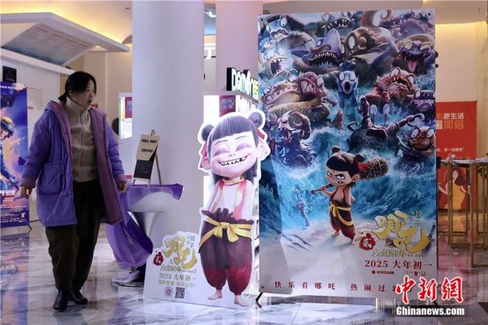 北京一家影院內(nèi)的《哪吒之魔童鬧海》海報(bào)。中新社記者 易海菲 攝