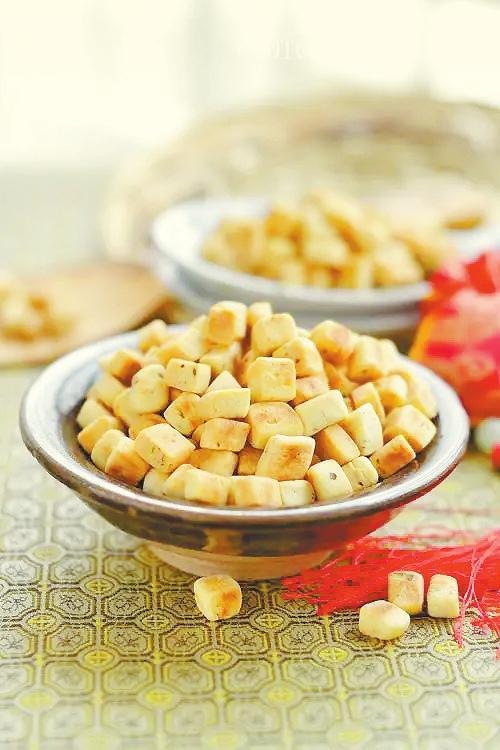 做面棋子,先和面。面里最好加豬油、雞蛋,攪拌均勻,加水,再揉,揉好面,搟開。不能太薄,也不能太厚,約半本語文書那般寬度即可。然后切,切成菱形,拇指大小,撒面,一拌,以防粘連。麥草燒鍋,鍋熱,放油。油熱,冒微煙,把面棋子放進鍋,反復(fù)翻炒,直到微黃。炒熟后,熄火,不蓋鍋蓋,再到鍋里“焙”(烤的意思)一陣,直到用勺子舀起,又倒下去,鐵鍋里叮當(dāng)有聲即可。