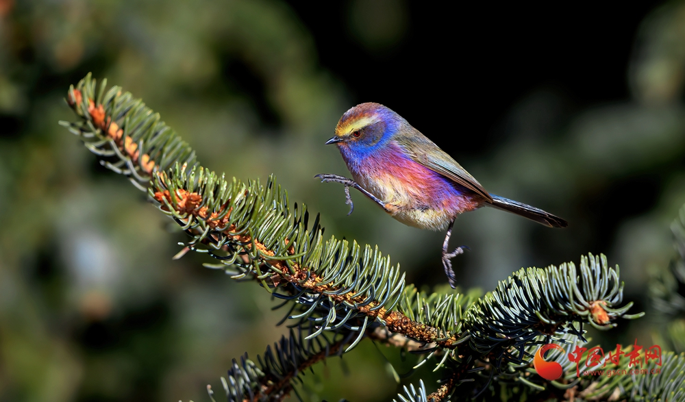 2月25日,初春的甘肅祁連山國家級自然保護(hù)區(qū)管護(hù)中心馬蹄自然保護(hù)站林區(qū),幾只花彩雀鶯正在悠閑覓食、鳴唱、飛舞。
