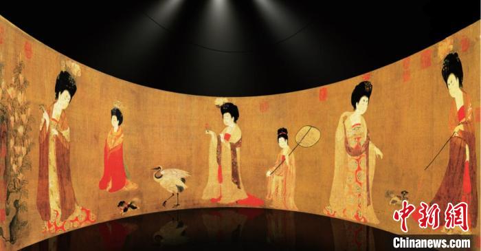 近日,遼寧省博物館推出“唐宋風(fēng)華——數(shù)字畫境中的藝術(shù)世界”展覽,圖為云裳花容區(qū)。(遼寧省博物館供圖)