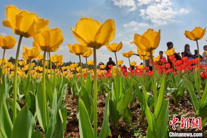 原標(biāo)題:長沙數(shù)十萬株郁金香盛放 游人共赴浪漫花海
