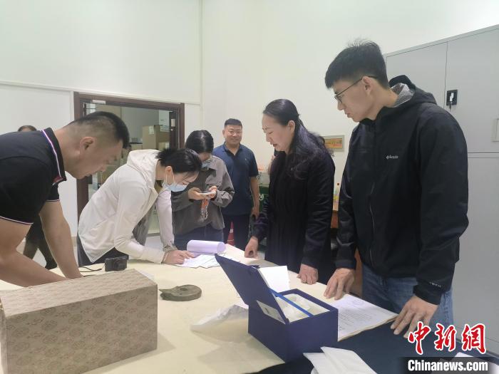 (資料圖)圖為“出差”文物正在點交。巴林右旗博物館 供圖