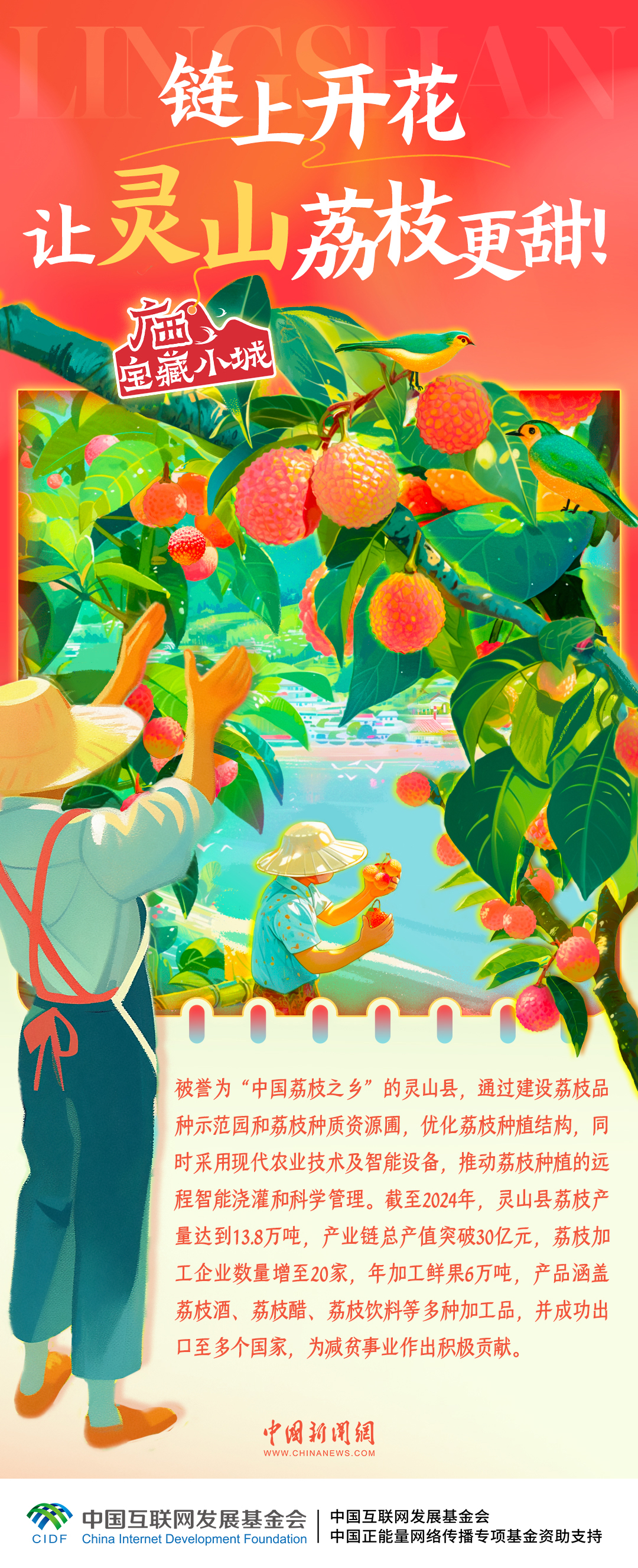被譽為“中國荔枝之鄉(xiāng)”的靈山縣,正以創(chuàng)新之姿引領(lǐng)現(xiàn)代果業(yè)發(fā)展浪潮,打造從鮮果到深加工的完整產(chǎn)業(yè)鏈,多元產(chǎn)品暢銷海內(nèi)外,實“荔”出圈。一起走進廣西寶藏小城靈山,感受荔枝產(chǎn)業(yè)的智慧轉(zhuǎn)型↓↓↓