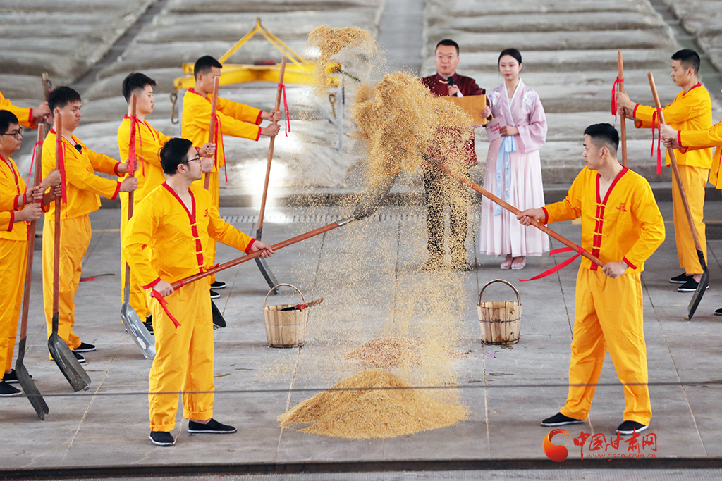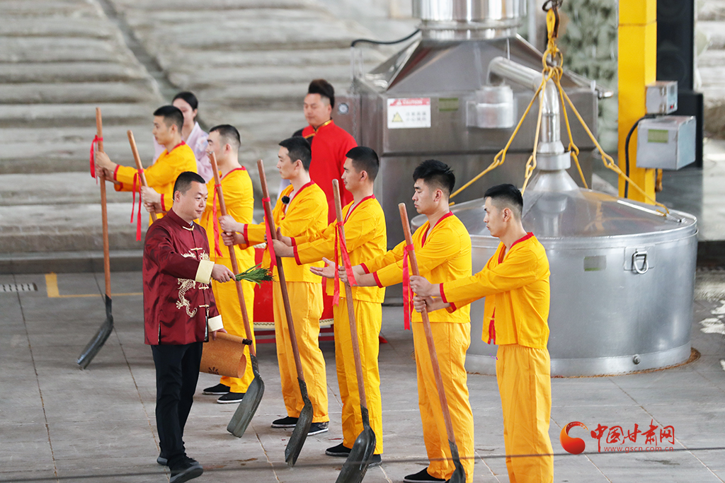 開釀儀式盡顯古樸,釀酒傳承人身著吉服,誦讀酒經(jīng)與祖訓(xùn):“德不立者不釀,心不誠者不釀……”并撒糠祈福,敬謝酒祖,隨著開釀聲起,酒匠們有條不紊開動,一锨一鏟,一甑一耙,配合默契,仿佛時光倒流至千年前。