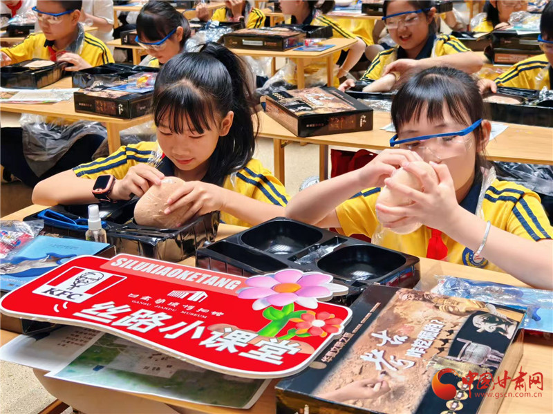 中國(guó)甘肅網(wǎng)5月18日訊(西北角·中國(guó)甘肅網(wǎng)記者 宋芳科)“考古盲盒 再探秦文化。”5月18日,由甘肅簡(jiǎn)牘博物館、甘肅省文物考古研究所、肯德基聯(lián)合舉辦的絲路小課本開課。作為2025年國(guó)際博物館日甘肅省主會(huì)場(chǎng)活動(dòng)之一,來(lái)自蘭州市多所小學(xué)的學(xué)生們?cè)诳系禄嫫娴呐惆橄?,感受了一?chǎng)跨越千年的文化盛宴。