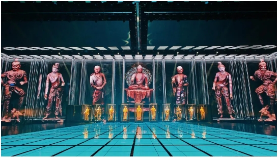 舞美奇觀:運(yùn)用前沿?cái)?shù)字技術(shù),結(jié)合精妙的舞臺(tái)設(shè)計(jì)和燈光效果,在舞臺(tái)上立體還原敦煌洞窟的恢弘與壁畫的精妙,營造如夢(mèng)似幻的沉浸式觀演體驗(yàn)。