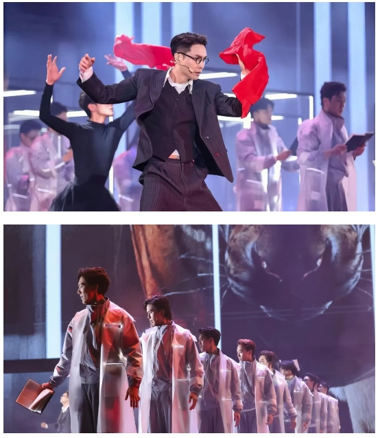 該劇最大的亮點(diǎn)在于創(chuàng)新性藝術(shù)融合,將非遺、科技、禪意、潮流、AI融入先鋒音樂話劇,打破傳統(tǒng)觀演模式和傳統(tǒng)舞臺(tái)結(jié)構(gòu),巧妙植入演唱會(huì)、音樂劇、話劇、舞劇甚至是電影多種藝術(shù)表現(xiàn)形式,通過人工智能、影視化、動(dòng)畫真人融合等最新科技賦能舞臺(tái),實(shí)現(xiàn)“戲劇+影視+Live”多種藝術(shù)場域的融合,“創(chuàng)造”了既現(xiàn)代又滿載中國審美的“敦煌”空間,讓觀眾沉浸體驗(yàn)敦煌文化的輝煌與魅力。