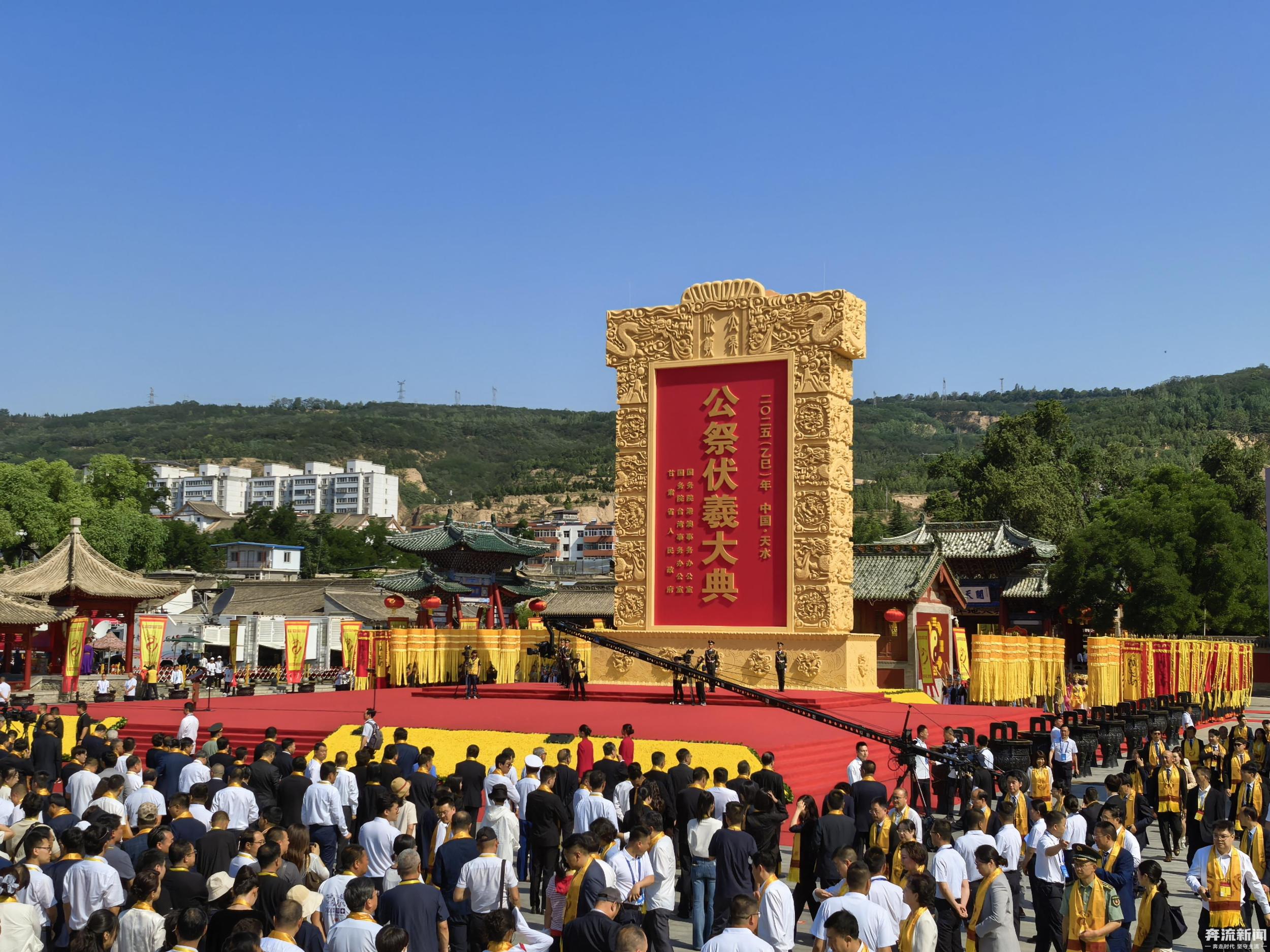 6月21日,夏至,甘肅天水,整座城沉浸在莊重而神圣的氛圍中。當(dāng)日,2025(乙巳)年公祭中華人文始祖伏羲大典在天水伏羲廟盛大舉行。人們從四面八方匯聚于此,共赴這場跨越千年的文化之約,向人文始祖伏羲致以最崇高的敬意。與此同時,寶島臺灣也同步舉行海峽兩岸共祭中華人文始祖伏羲典禮。