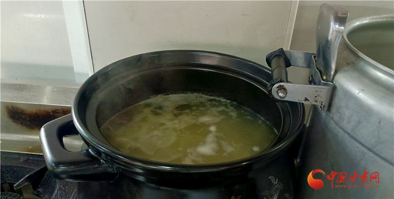 王永德,是山丹罐罐席的市級非遺傳承人。他的傳習(xí)所在李橋鄉(xiāng)高廟村,推門而入,柴火香混著肉香撲面而來,陶罐在灶上咕嘟作響。